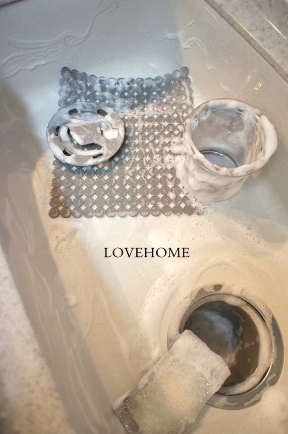 キッチン洗剤でシンクマット、シンクの内側、排水かご