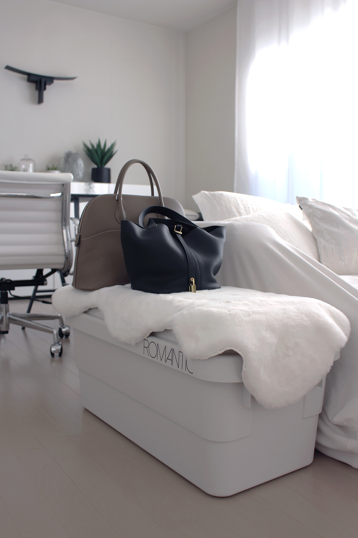 ムートンラグを掛け無機質感を消し