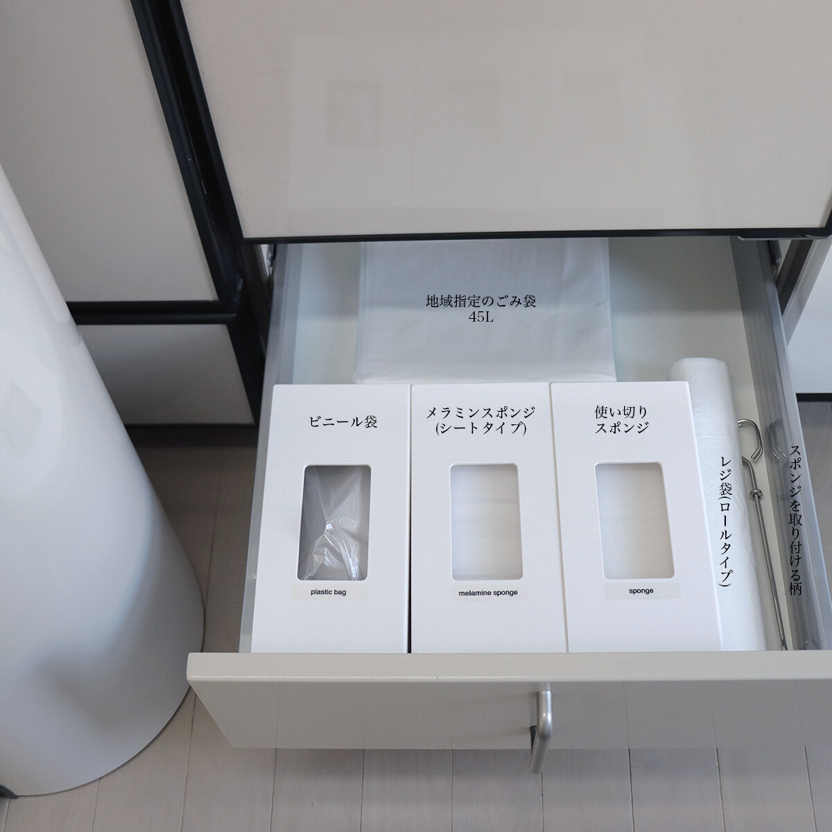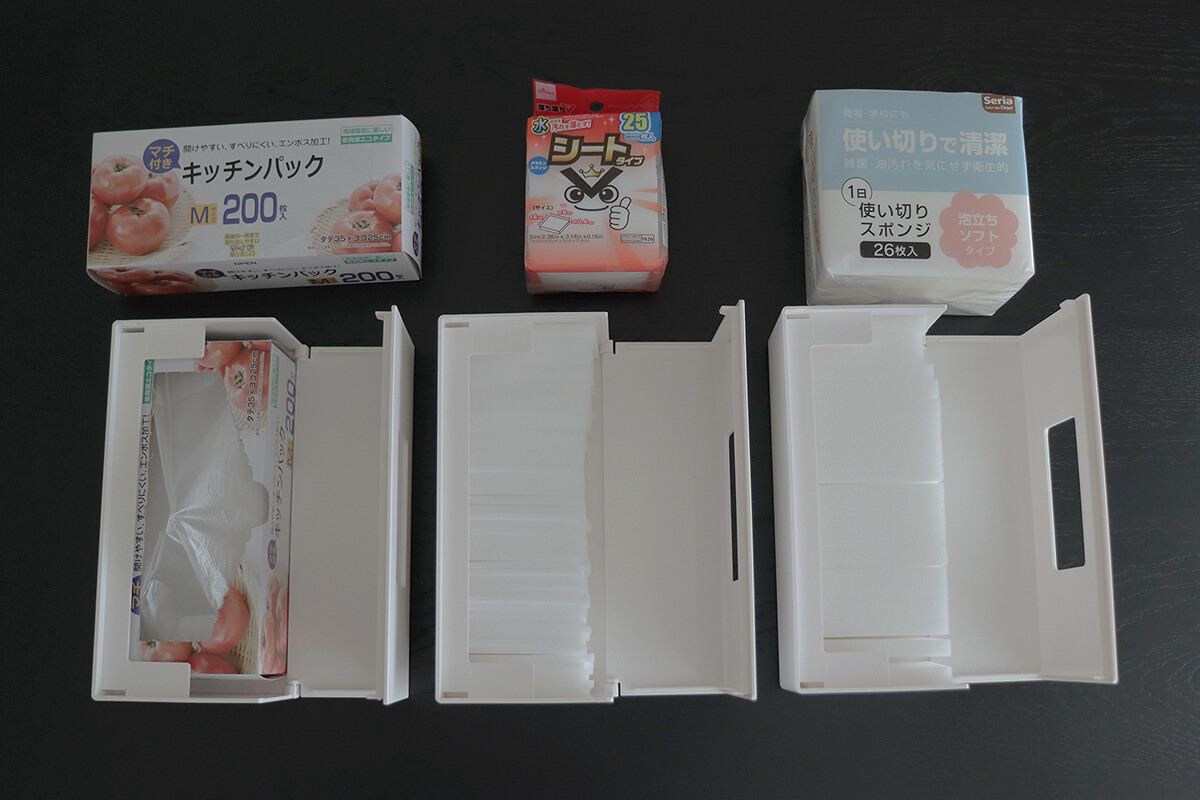 ビニール袋、使い切りスポンジ
