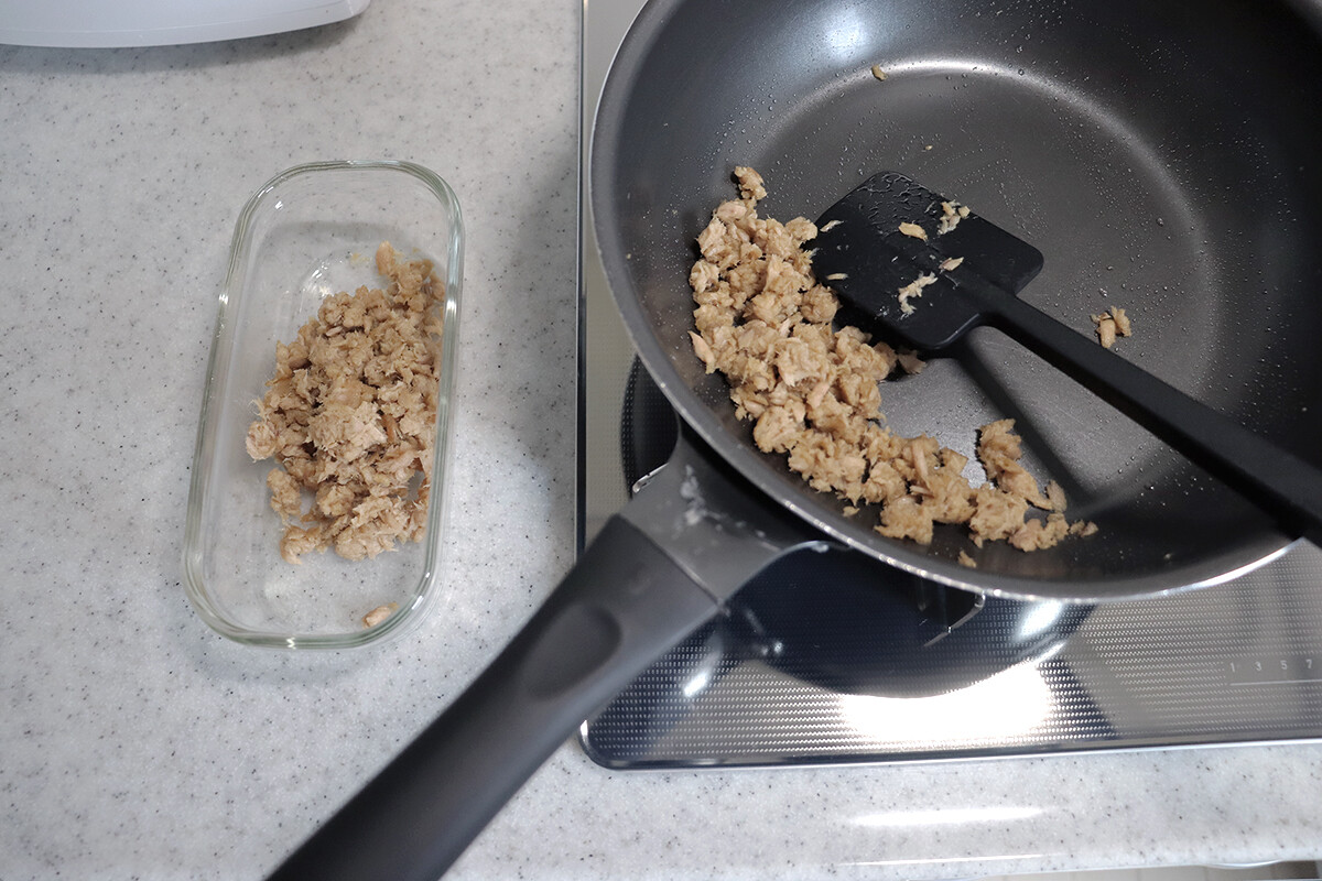 炒めたツナはパラパラしているので