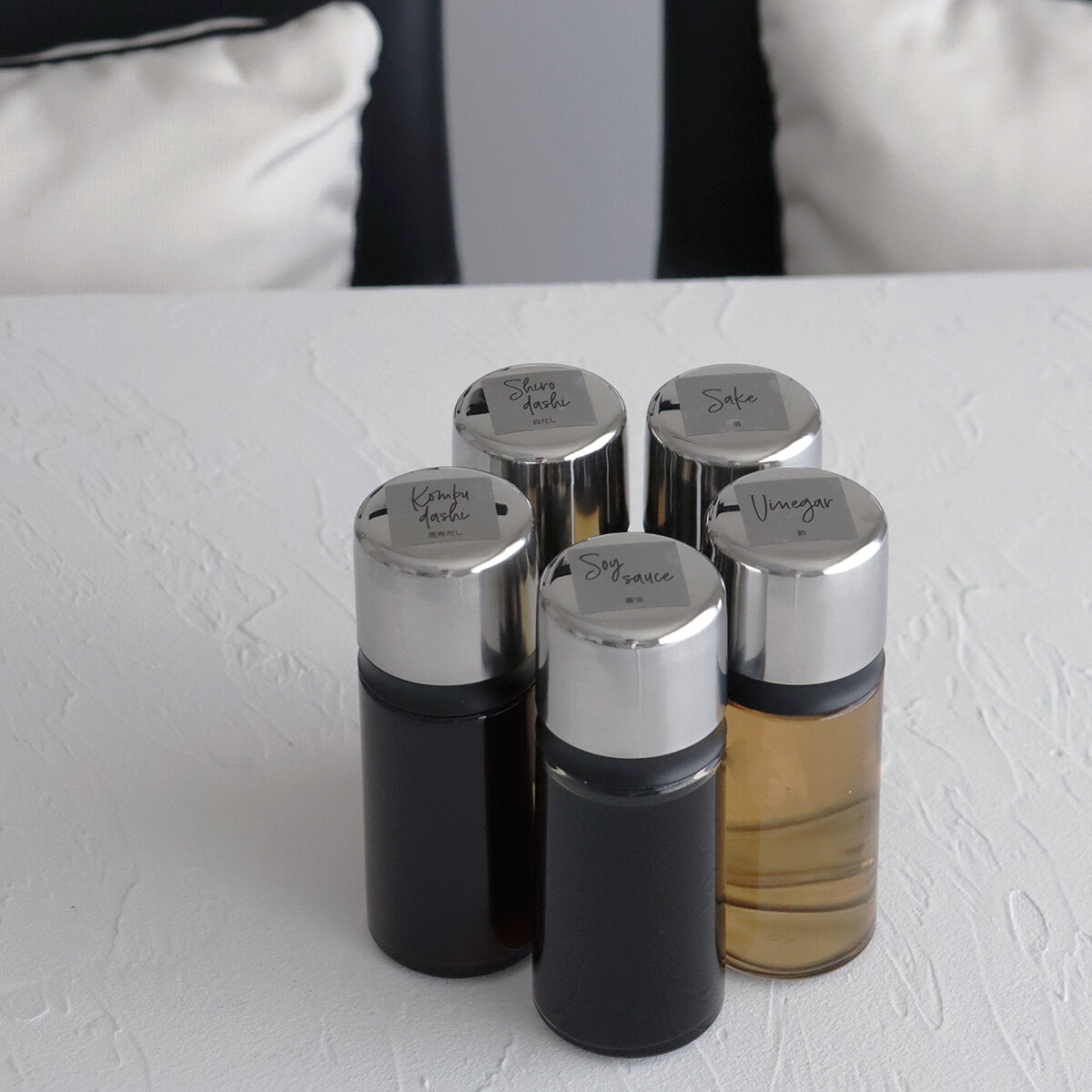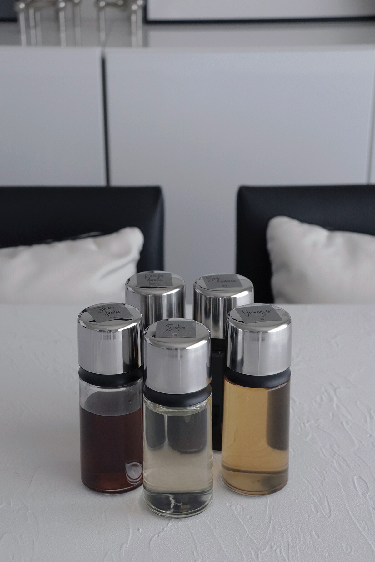 酒、白だし、お酢は透明と
